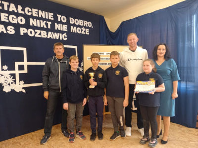 W dniu 24 października w Szkole Podstawowej w Ryszkowej Woli odbyły się drużynowe powiatowe zawody szachowe w ramach Igrzysk dzieci tj. uczniów urodzonych w 2011 roku i młodszym. Nasza drużyna w składzie: Bartłomiej Styrna, Szymon Garbacz, Antoni Kuras oraz Michalina Iwaneczko zajęła I miejsce (wygrywając z SP Makowisku, Rokietnicy, Ryszkowej Woli, remisując z SP 7 w Jarosławiu).