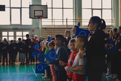 Społeczność naszej szkoły zgromadziła się dzisiaj na Apelu poświęconym 20. rocznicy przystąpienia Polski do Unii Europejskiej.